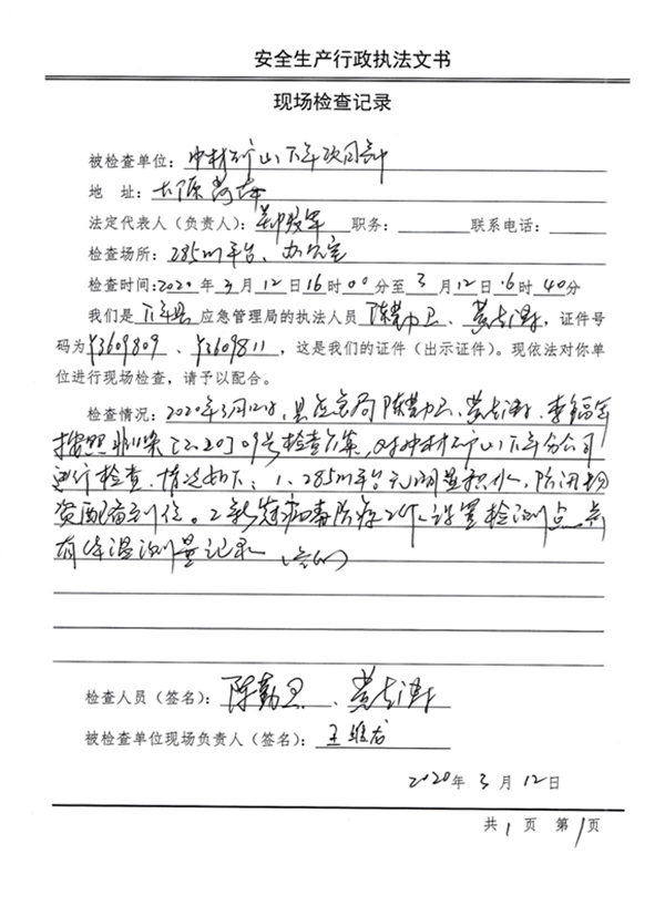 2020312午,根據萬年縣疫期防控需要,萬年縣應急管理局領導中材礦山萬年分公司施工現場及辦公室進行檢查主要檢查了分公司疫情防控相關措施及汛期防護設施物資。