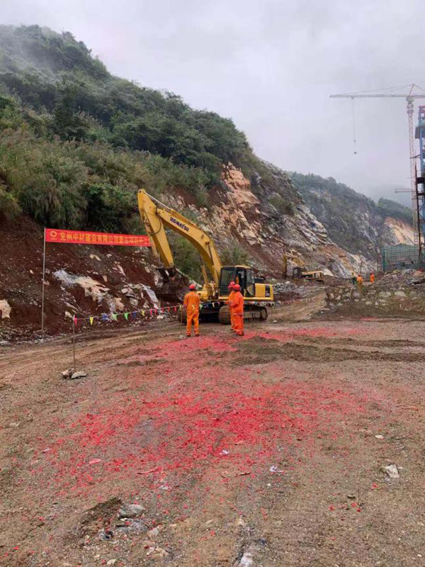 上午8點26分開工儀式準時開始,項目經理尚曉峰同志做簡短講話,鼓勵員工克服施工中的不利因素,認真做好安全生產工作,服務好業主,按期圓滿完成景谷紅獅礦山基建工程。 在陣陣鞭炮聲中,所有施工人員就位,工程機械緩緩駛入施工位置,邁出了新項目建設工作的第一步。