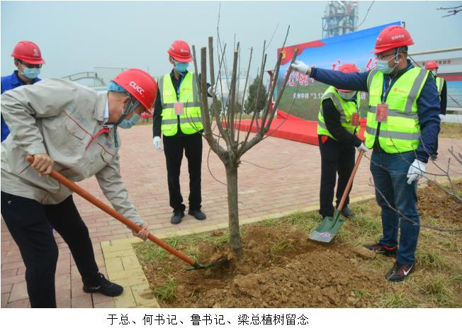 中材礦山總會計師于劍平、兗州中材黨委副書記何芳訓、紀委書記魯臣參加了泰安分公司落虎山水泥用灰巖礦開展“黨旗紅礦山綠”主題植樹節活動。